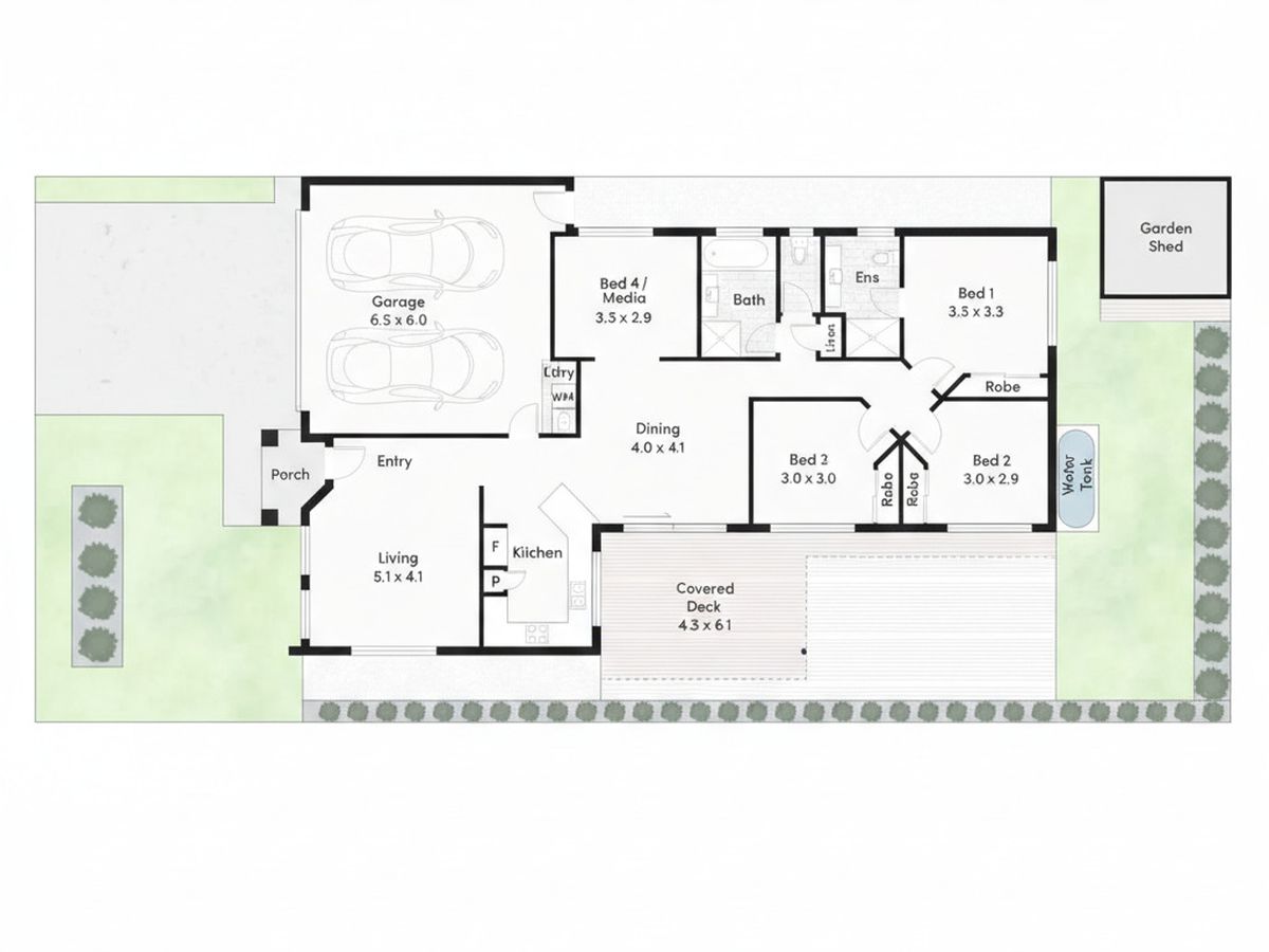 • 5,000L water tank plumbed to laundry & garden